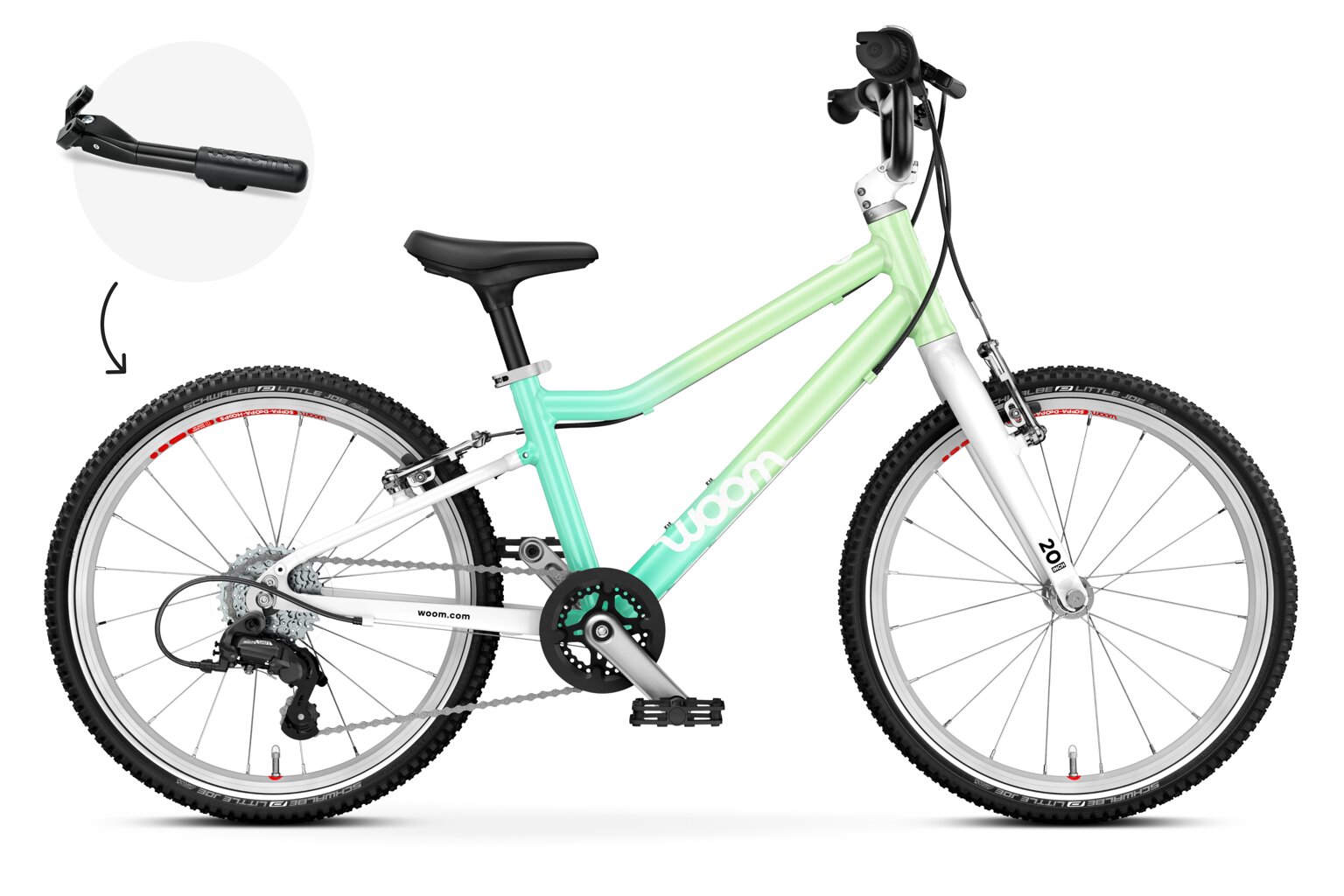 Nastal čas naučit se řadit! Kolo Woom GO 4 má plynulé a intuitivní 7stupňové řazení, takže to bude hračka. Kolo má hmotnost pouhých 7,8 kg a speciální dětskou geometrií, která zajišťuje přirozeně vzpřímenou polohu jezdce a snadné ovládání.