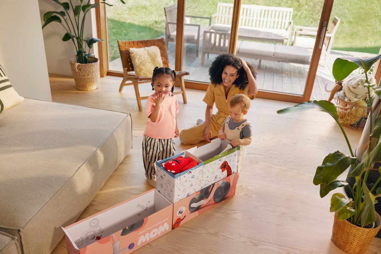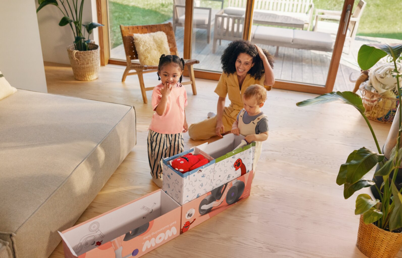 Zábava začíná už při rozbalování. Připravte se na opravdový „WOW“ efekt, kdy odrážedlo samo vyjede z krabice. Je plně smontované a připravené na dobrodružství!