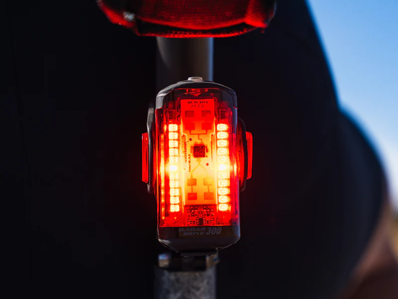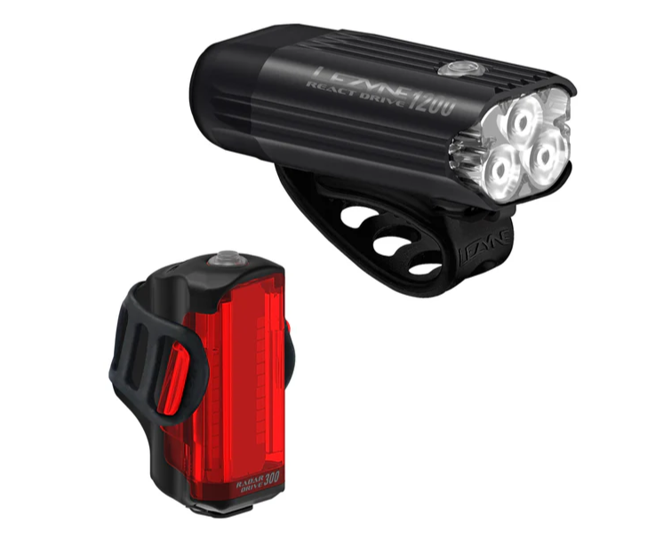 Obsahuje zadní světlo Radar Drive a přední světlo React Drive